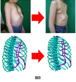コンピューターを利用した解析計算を行うことにより、バーを挿入すると胸郭の形がどのように変わるのかを予測することができます。